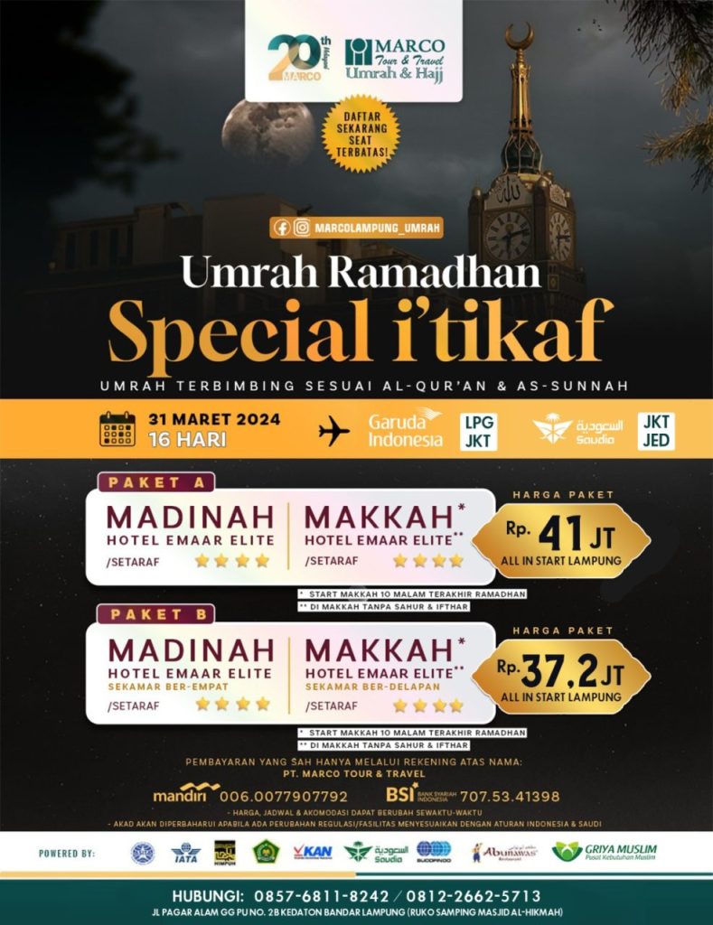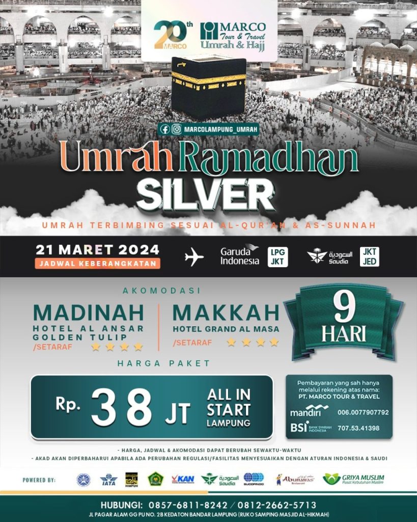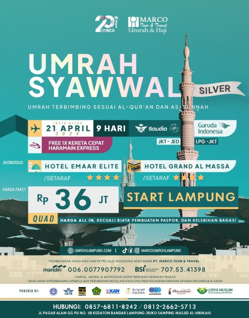 Marco Umroh Lampung – Umrah Syawal, Daftarkan diri anda segera, Seat umroh terbatas! Umrah syawal merupakan salah satu program umrah unggulan dari Marco Haji & Umroh Lampung . Nyaman, termbimbing dan sesuai sunnah adalah motto marco umroh lampung dalam melayani para tamu-tamu Allah dalam melaksanakan ibadah umrah. Allah SWT berfirman, “Dan Dia memberinya rezeki dari […]